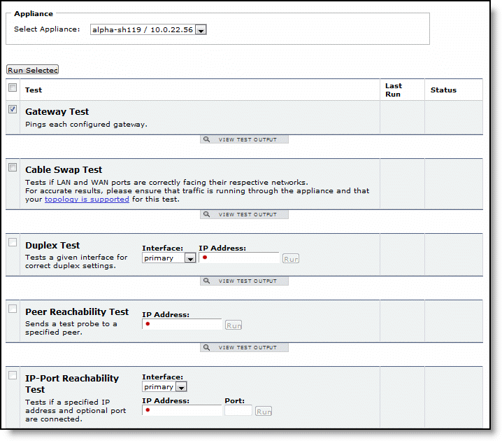 Select the check box next to the test, and click Run Selected to run the test. Click View Test Output to display the test results.
