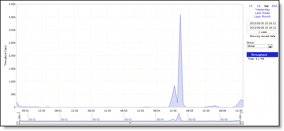 Displays the throughput in bits per second. The navigator shadows the throughput series.