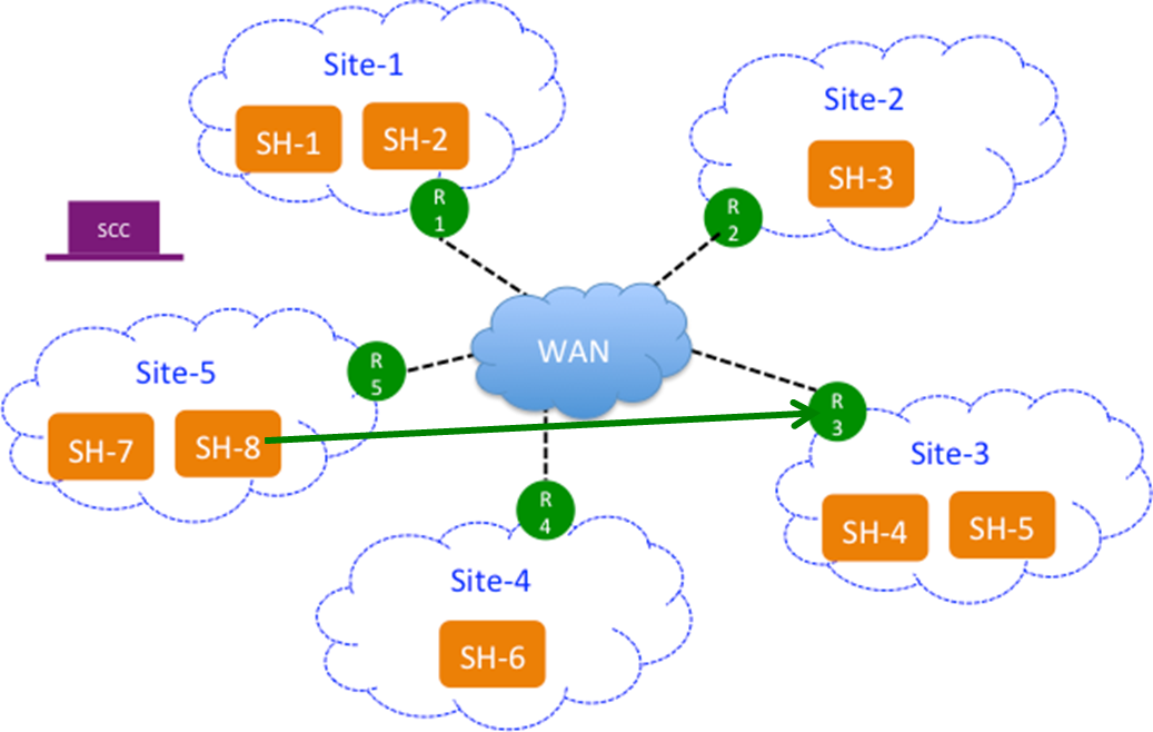 SteelHead (SH 8) probing an endpoint (R3) in Site3