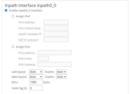 Under Appliance Configuration Pages, click In-Path Interfaces to display the Editing Appliance Configuration: <hostname>, In-Path Interfaces page.