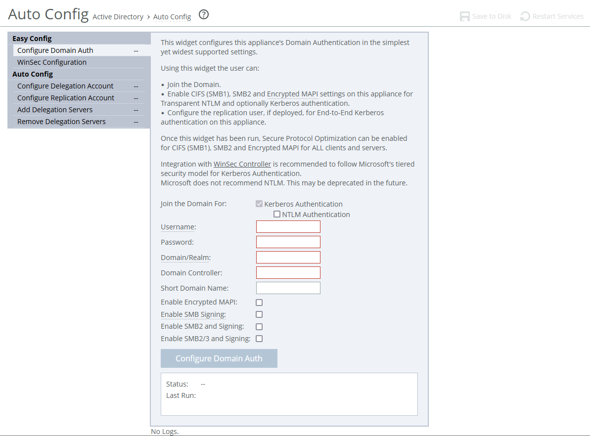 With the exception of service accounts configuration, you can complete all of the above settings on the server-side SteelHead by using the Configure Domain Auth widget. See