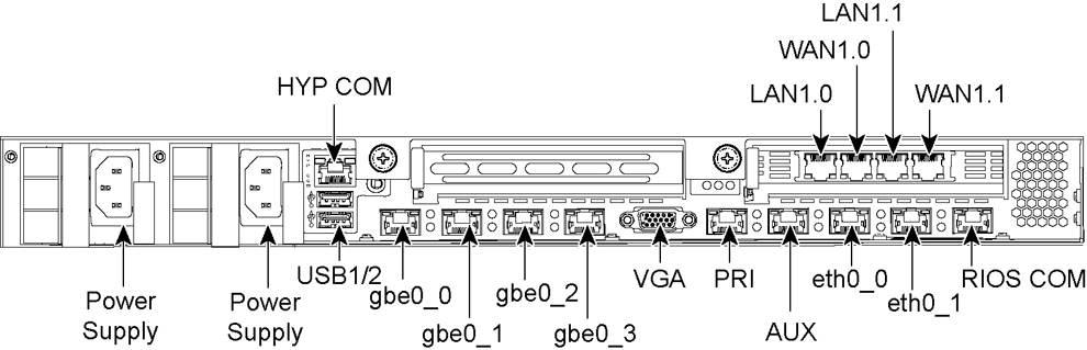 LAN1.0, WAN1.0, LAN1.1, WAN1.1 | Provides access to the 10/100/1000 Base-TX. • The LAN port connects the system to a LAN switch. • A WAN port connects the system to the WAN router. |