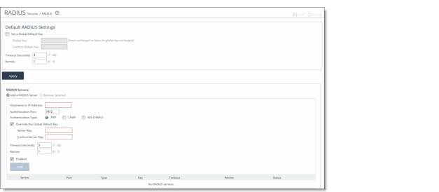 Add a RADIUS Server | Displays the controls for defining a new RADIUS server. |