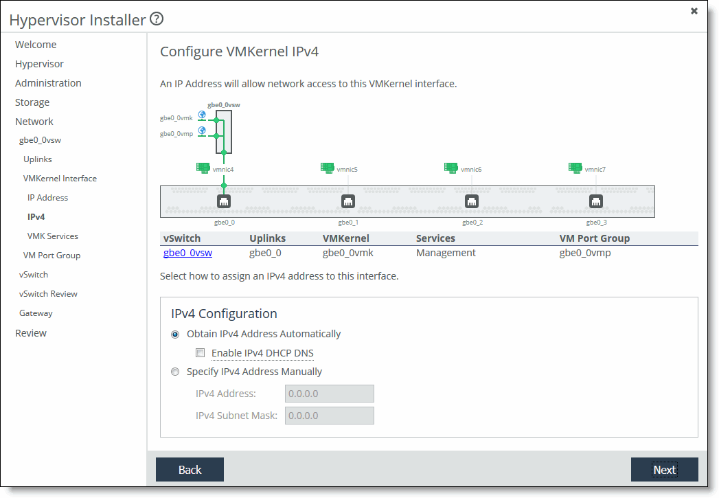 10. Click Next. The Configure VMKernel IPvx page appears.