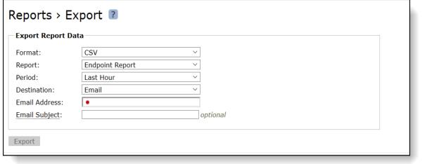 Destination | Select the destination type: • Email - Emails the report to the specified address. • Download - Downloads the report in Excel format. |