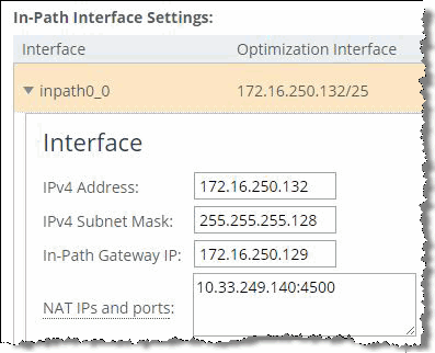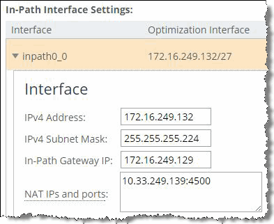3. Configure the public IP address and port of the in-path interface in the SteelHead Management Console (