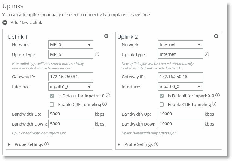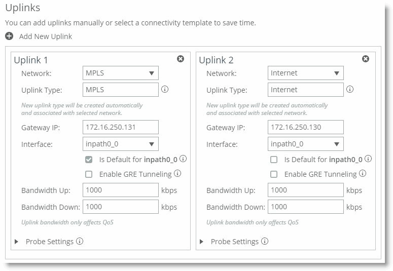 Figure: Configure the uplinks for the branch office