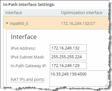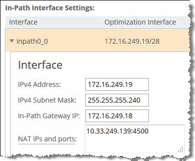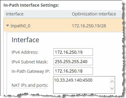 6. Configure the public IP address and port of the in-path interface in the SteelHead Management Console (
