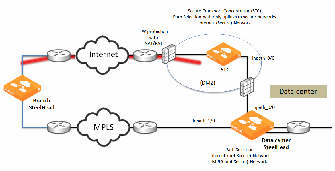 Starting in RiOS 9.0 and SCC 9.0 Riverbed introduces the secure transport feature. Secure transport is integrated with path selection and provides a method to configure and enable encryption services for traffic over a path. Secure transport provides security services at the IP layer for path selection—you can add security for an application, application groups, or custom applications based on the path the traffic travels. By integrating encryption services into the SteelHead, the secure transport feature delivers a secure path between peers over a private WAN, public internet, or a hybrid network.