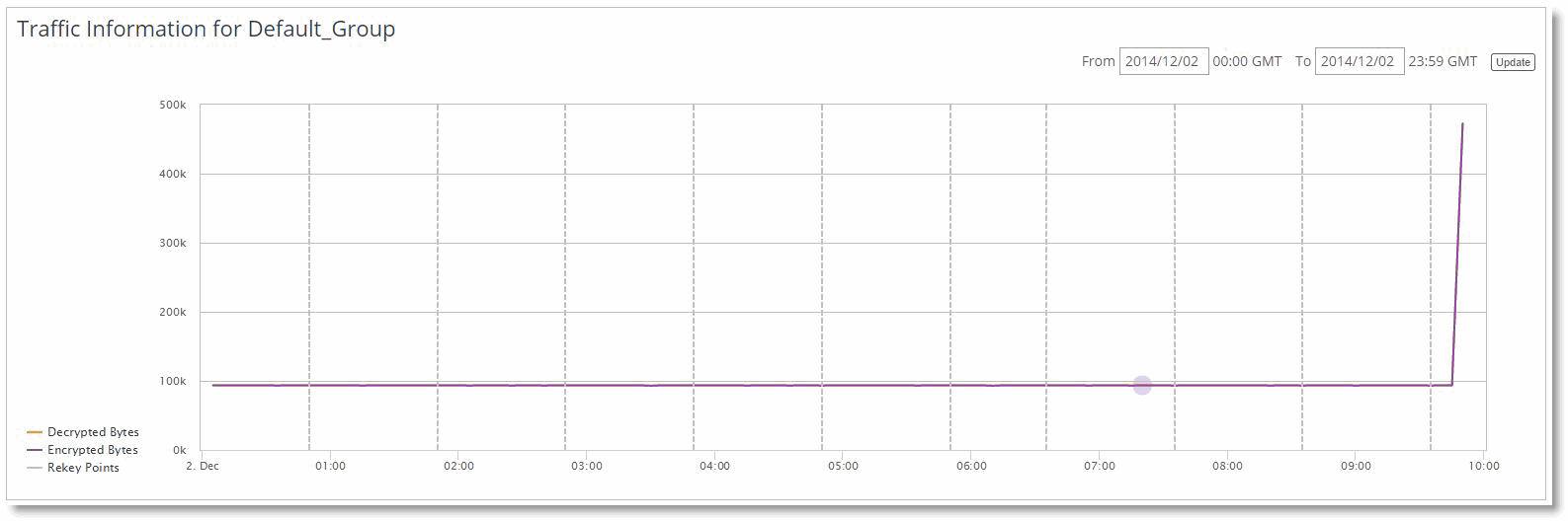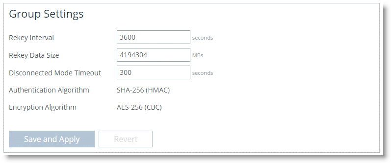 Figure: Rekeying settings). However, for higher speed links a rekey can be triggered by the total amount of data transacted by the group, which is by default 4 TB. You can adjust these values by choosing Manage > Services: Secure Transport.