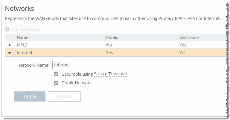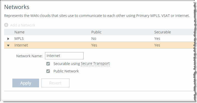 Figure: Internet path shows how the network table looks upon completion. The internet path is configured as public and securable.