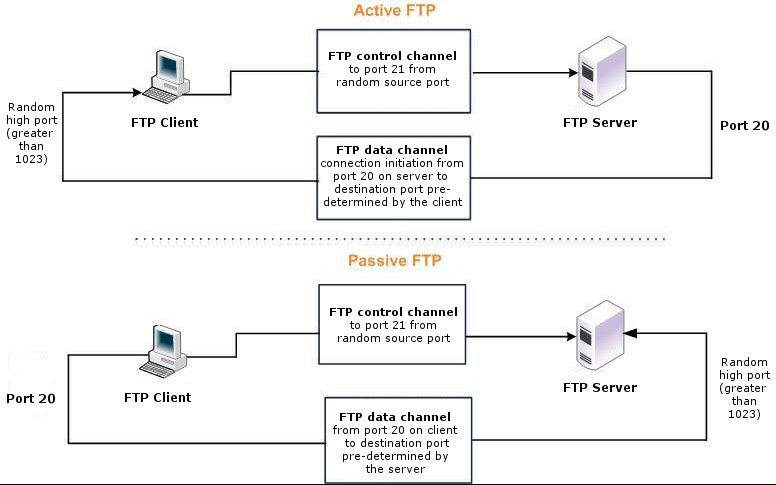 Active and passive FTP