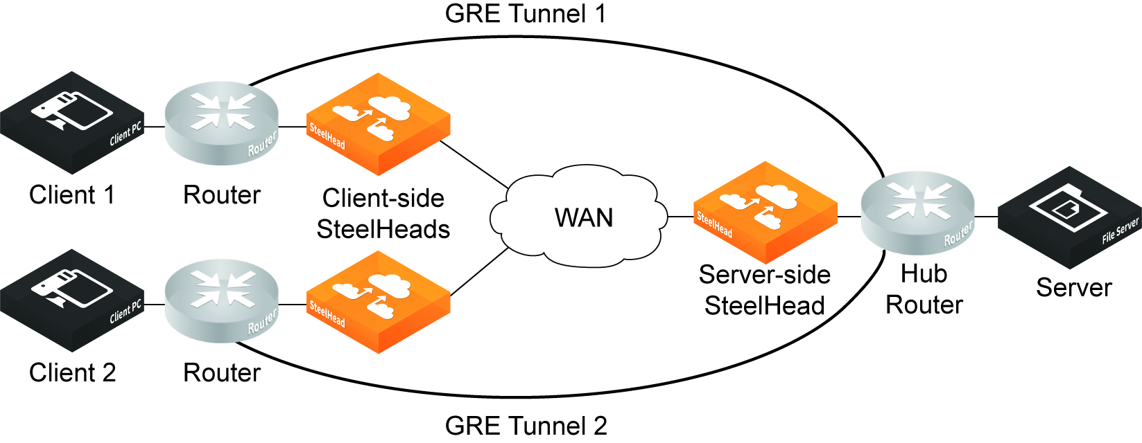 • High Loss Links—TCP doesn’t work well on misconfigured links (for example, an under-sized bottleneck queue) or links with even a small amount of loss, which leads to link under-utilization. If you have dedicated point-to-point links and want those links to function at predefined rates, configure the SteelHead to prioritize TCP traffic.