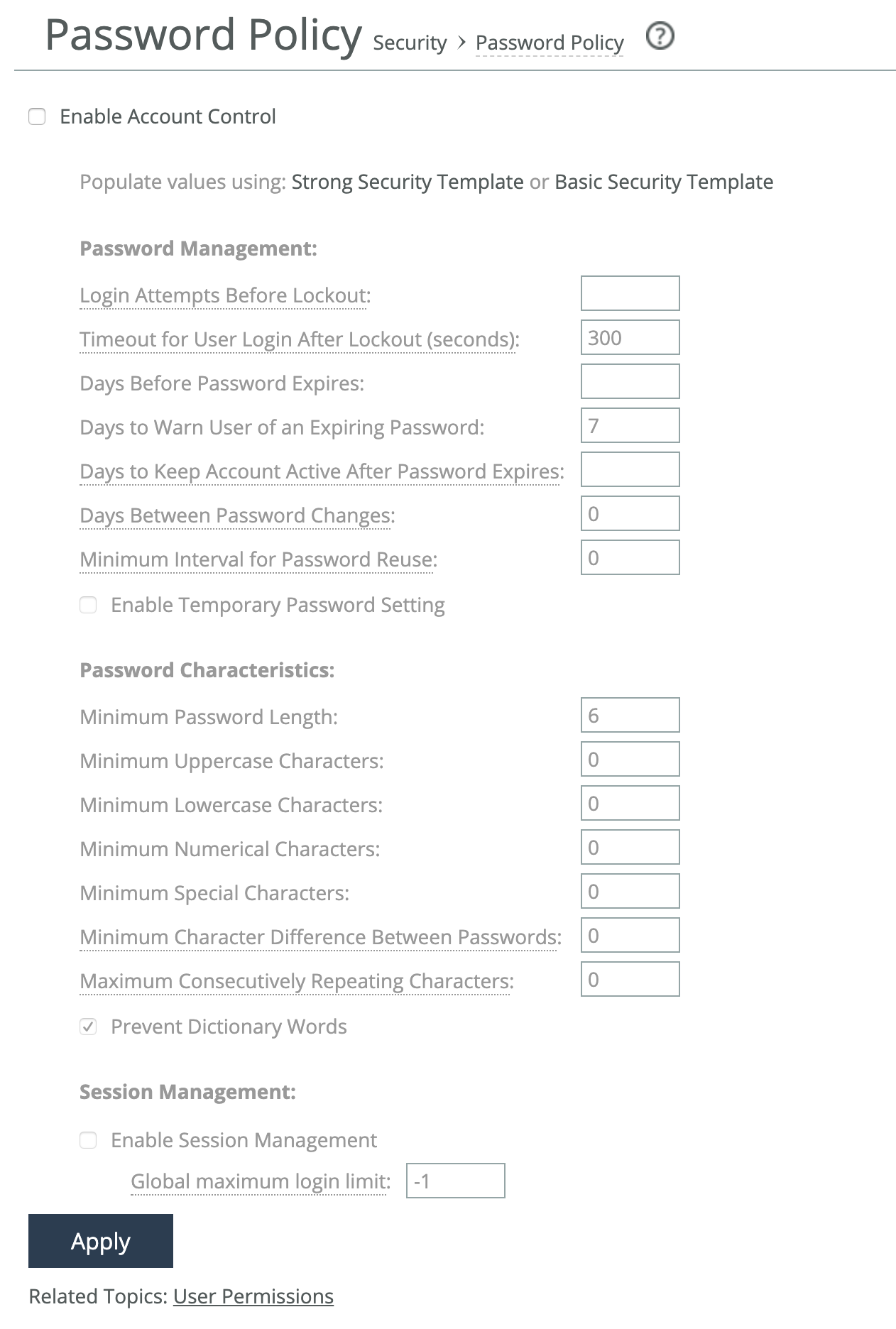 These configuration options are available under Password: