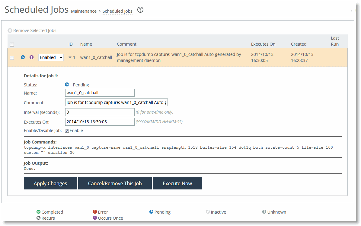 Select Enabled or Disabled from the drop-down list to enable or disable the job. Select the Job ID number to display details about the job.