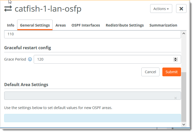 • OSPF Uplinks - Select the uplinks from the list. These are the uplinks that will be participating in OSPF in the area that is configure on this page.