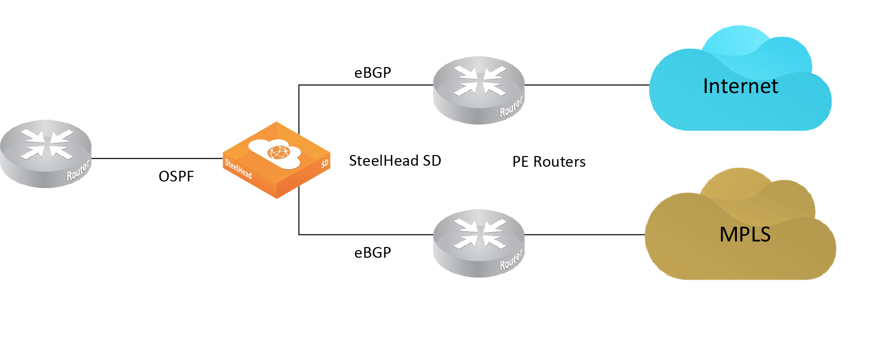 SteelHead SD provides support for both exterior Border Gateway Protocol (eBGP) and interior Border Gateway Protocol (iBGP). SteelHead SD doesn’t restrict BGP to the LAN or the WAN; it can communicate with its associated neighbors regardless of whether it is on the LAN or WAN.