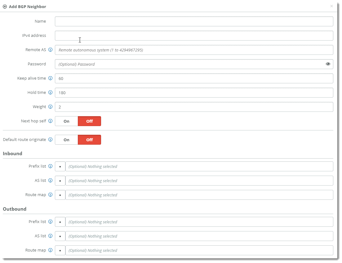 5. Under BGP neighbors, click Add BGP Neighbor.