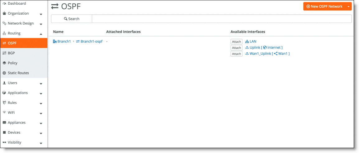 2. Select the OSPF tab and select the appliance to display the OSPF neighbors and learned routes.