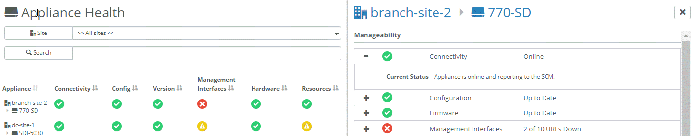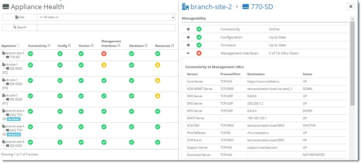You can check SteelHead SD connectivity to SCM in the Health Check > Appliance Health page.
