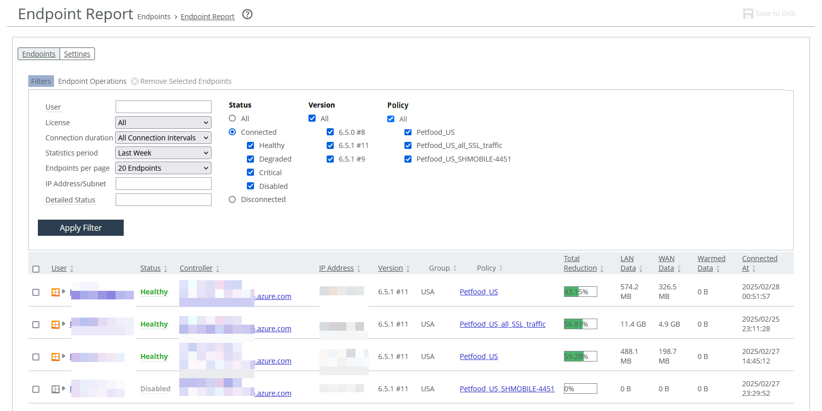 – Endpoints per page—Select All Endpoints, or 20, 50, or 100 endpoints.