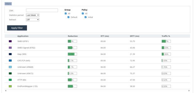 Effective round-trip (ERTT) statistics help you to evaluate time savings provided by acceleration. These statistics help to measure how much accelerated application usage is sped up through data reduction and streamlining. ERTT is calculated as: ERTT = (WAN_Bytes / Local_LAN_Bytes) * WAN_RTT