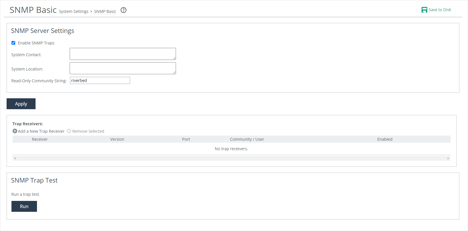 Enable a trap receiver to use it. Disable it or remove it if you don’t want to use it. You can test traps by running the trap test on the Administration > System Settings: SNMP Basic page.