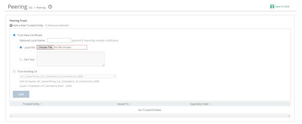 1. Choose Administration > SSL: Peering to display the Peering page.