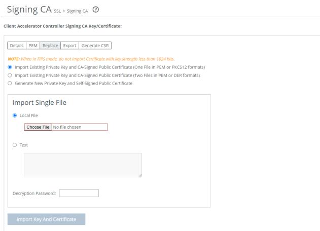 2. Select Replace to display the import CA options.
