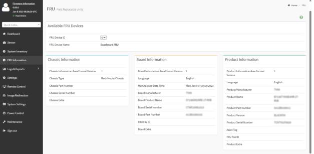 • Available FRU devices—Select the FRU ID to display detailed information.