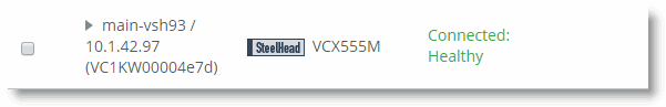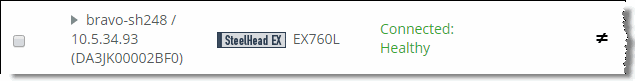 Figure: Example of an SCC-managed SteelHead requiring policy push, SteelHead EX is connected, but the Push Required symbol indicates that policies haven’t been pushed. The configuration doesn’t necessarily reflect the current policy settings until the policy has been pushed.