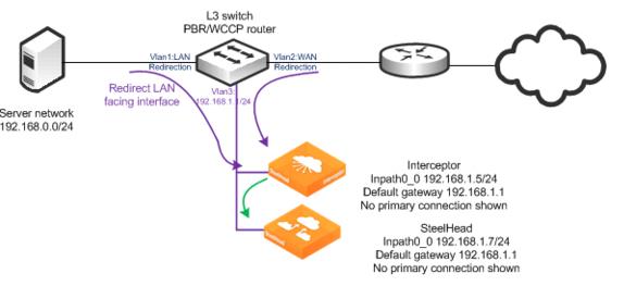 • The Interceptor and SteelHead in-path interfaces are in the same subnet. This setting isn’t required for Interceptor deployments.