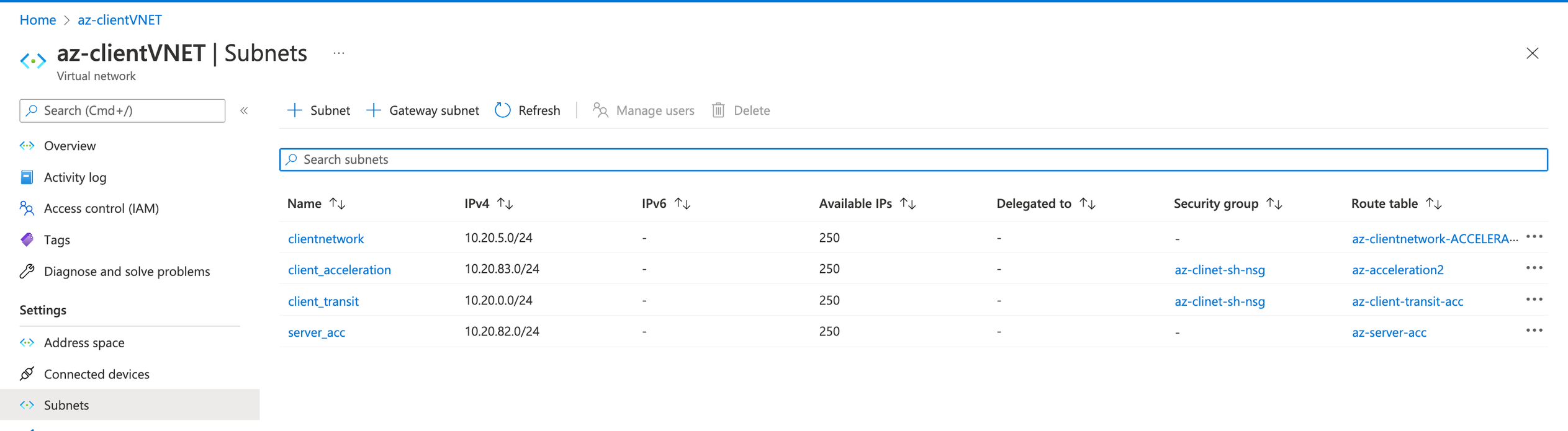 1. Create subnets. You may want one each for transit, acceleration, and server network.