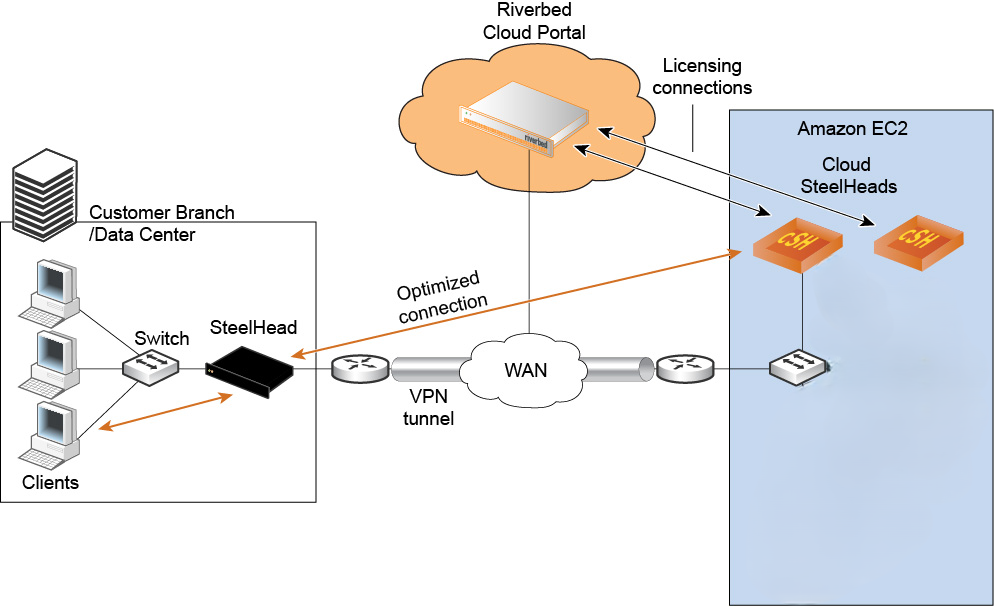– TCP connections between the SteelHead Cloud and client-side appliances.