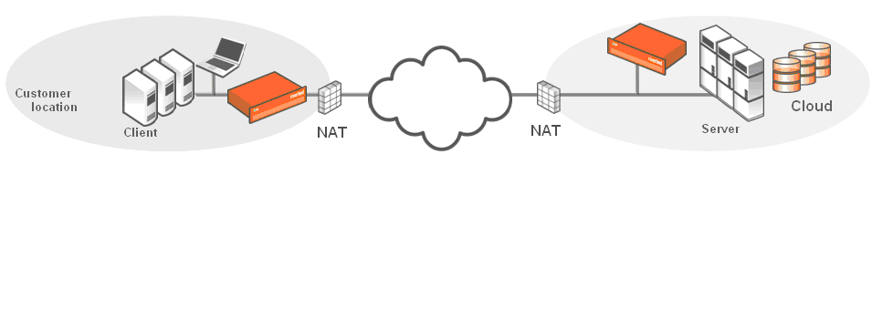 Figure: Clients in the cloud behind a SteelHead Cloud show deployments where the network does not have NAT. For example, when you use an Amazon Virtual Private Cloud (VPC).